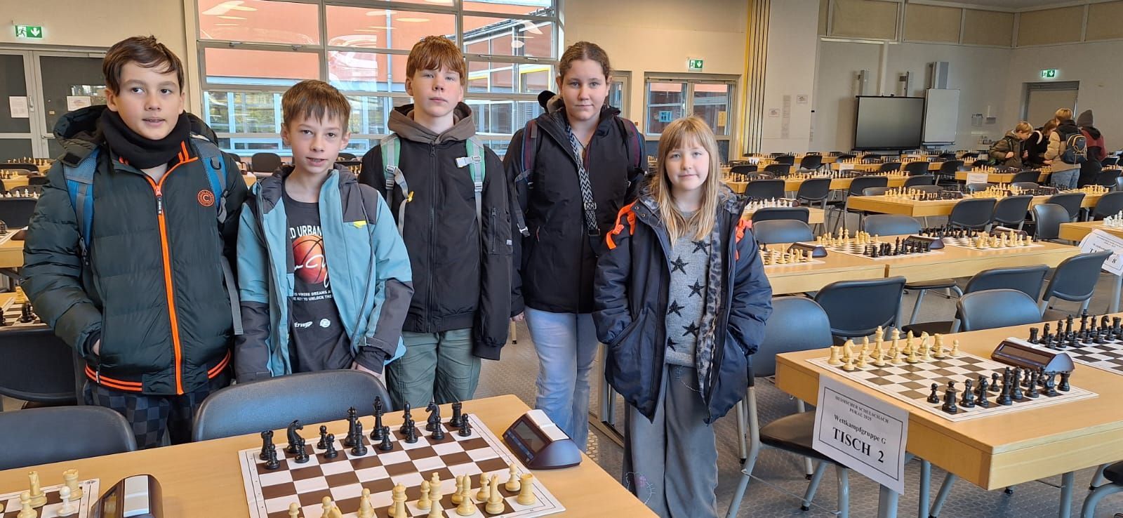 Als Mannschaft der Schach AG vertraten uns beim Hessischen Schulschachpokal Fabian Martin, Oskar Ebeling, Marie Uth, Alexander Thiemer und Emily Barwig.